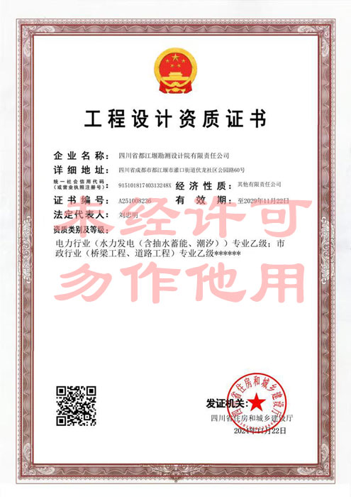 四川省都江堰勘測設計院有限責任公司是一家專業從事水利水電工程勘察設計的專業甲級設計院,目前具有水利行業(灌溉排澇)專業甲級、水利行業(引調水、河道整治、城市防洪)專業乙級、電力行業(水力發電(含抽水蓄能、潮汐))專業乙級、市政行業(道路工程、橋梁工程)專業乙級、水利行業(水庫樞紐、圍墾、水土保持)專業丙級設計資質、工程勘察專業類(巖土工程、水文地質、工程測量)乙級資質和水利工程咨詢、項目管理丙級資質,通過了ISO9001:2008質量體系國際標準認證。 通過30多年的發展,公司已經擁有一支愛崗敬業、專業精湛、分工明確、協作配合的專業技術隊伍和高水平的顧問團隊,有完善的組織機構、優秀的管...